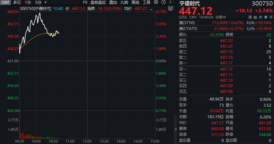 一季度赚了207亿元的宁德时代今日开盘即震荡拉升,盘中一度大涨逾6%,总市值(A+H)再创历史新高,站上2万亿元。